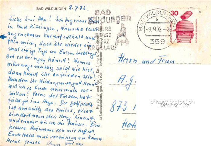 72778796 alte Postkarte Bad Wildungen Fliegeraufnahme postalisch gelaufen Erhaltung siehe scans [FriedD77] KatCode: 11110006635003