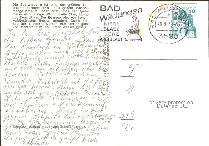 71986248 alte Postkarte Bad Wildungen Fliegeraufnahme Edertalsperre postalisch gelaufen Erhaltung siehe scans KatCode: 11110006635003