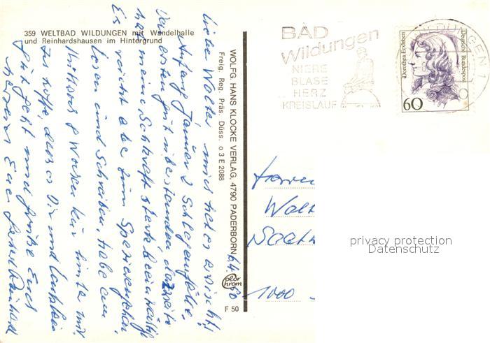 73101690 alte Postkarte Bad Wildungen Fliegeraufnahme mit Wandelhalle und Reinhardshausen postalisch gelaufen Erhaltung siehe scans [WerneD78] KatCode: 11110006635003