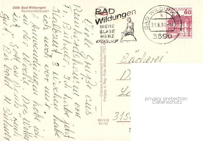 73173167 alte Postkarte Bad Wildungen Fliegeraufnahme Reinhardshausen postalisch gelaufen Erhaltung siehe scans [LiesaD40] KatCode: 11110006635003
