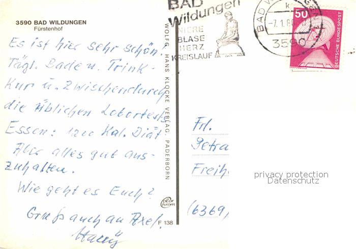 72856393 alte Postkarte Bad Wildungen Fuerstenberg postalisch gelaufen Erhaltung siehe scans [WerneD78] KatCode: 11110006635003
