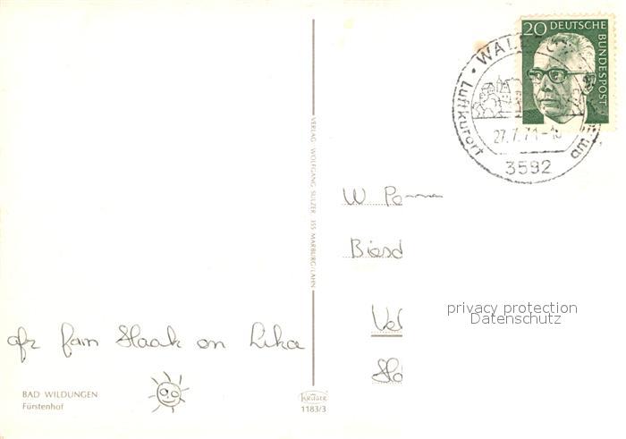 72933589 alte Postkarte Bad Wildungen Fuerstenhof postalisch gelaufen Erhaltung siehe scans [WerneD78] KatCode: 11110006635003