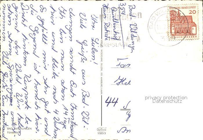 72922860 alte Postkarte Bad Wildungen Fuerstenhof postalisch gelaufen Erhaltung siehe scans [LiesaD40] KatCode: 11110006635003