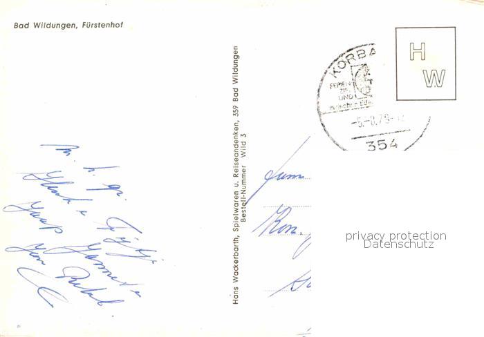 72781308 alte Postkarte Bad Wildungen Fuerstenhof postalisch gelaufen Erhaltung siehe scans [WerneD78] KatCode: 11110006635003