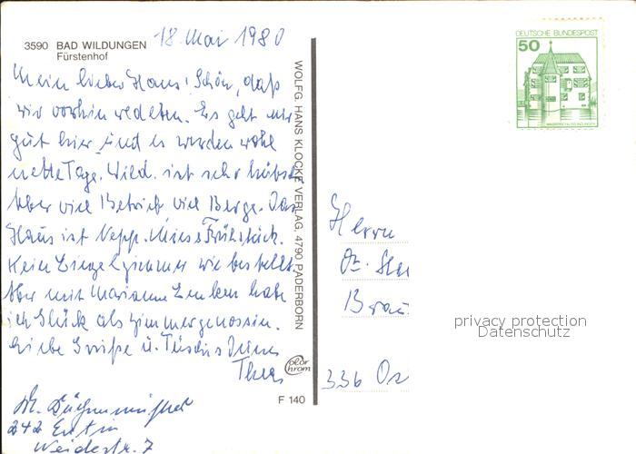 72608607 Bad Wildungen Fuerstenhof postalisch nicht gelaufen Erhaltung siehe scans [LiesaD40] KatCode: 11110006635003