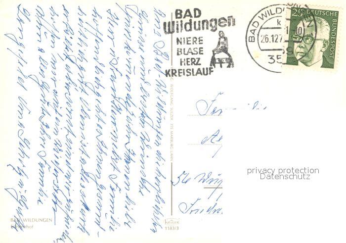 73650374 alte Postkarte Bad Wildungen Fuerstenhof postalisch gelaufen Erhaltung siehe scans [WerneD78] KatCode: 11110006635003