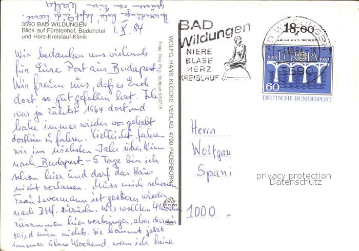 72153518 alte Postkarte Bad Wildungen Fuerstenhof Badehotel Herz Kreislauf Klinik Fliegeraufnahme postalisch gelaufen Erhaltung siehe scans KatCode: 11110006635003