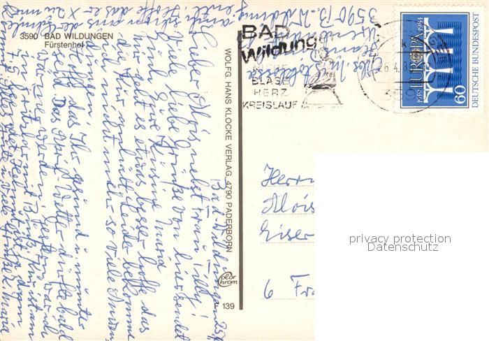 73042558 alte Postkarte Bad Wildungen Fuerstenhof Kurhotel postalisch gelaufen Erhaltung siehe scans [FriedD77] KatCode: 11110006635003
