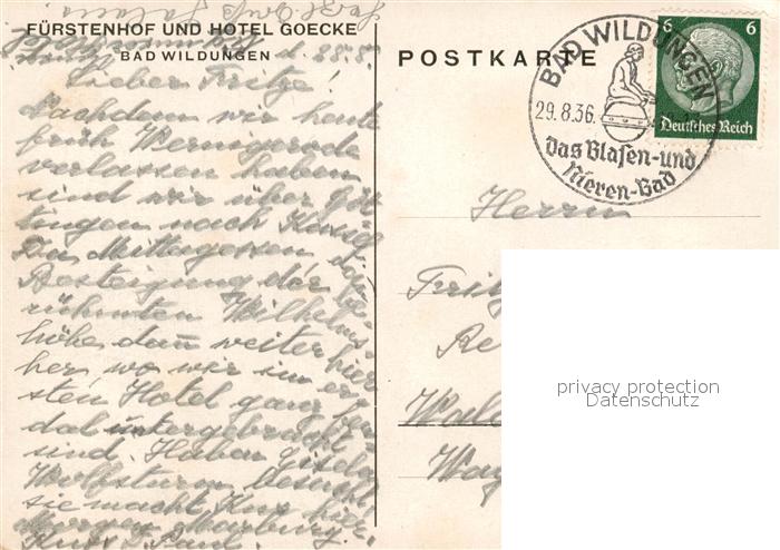 43180294 alte Postkarte Bad Wildungen Fuerstenhof und Hotel Goecke Fliegeraufnahme postalisch gelaufen Erhaltung siehe scans [WerneD78] KatCode: 11110006635003