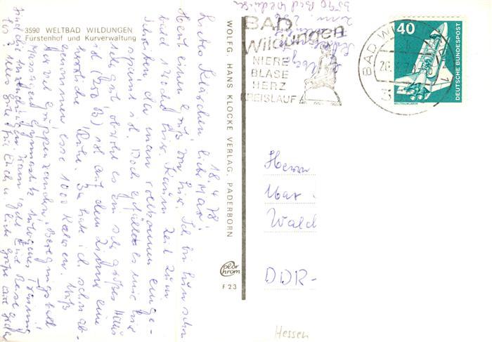 73886560 alte Postkarte Bad Wildungen Fuerstenhof und Kurverwaltung postalisch gelaufen Erhaltung siehe scans [WerneD78] KatCode: 11110006635003