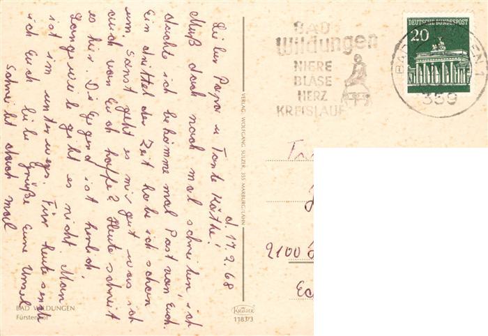 73924670 alte Postkarte Bad Wildungen Fuerstenhof postalisch gelaufen Erhaltung siehe scans [FriedD77] KatCode: 11110006635003