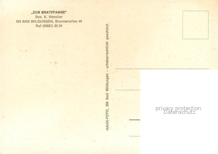 73769528 Bad Wildungen Gaststaette Bratpfanne postalisch nicht gelaufen Erhaltung siehe scans [WerneD78] KatCode: 11110006635003
