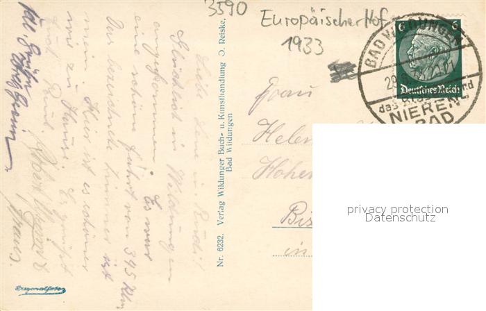 73692407 alte Postkarte Bad Wildungen Georg Victorstrasse mit Hotel Europaeischer Hof postalisch gelaufen Erhaltung siehe scans [WerneD78] KatCode: 11110006635003