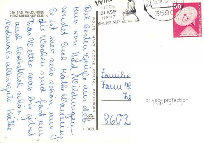 72713063 alte Postkarte Bad Wildungen Herz-Kreislauf-Klinik postalisch gelaufen Erhaltung siehe scans [LiesaD40] KatCode: 11110006635003