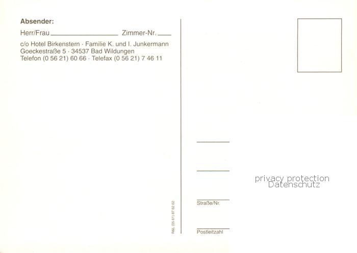 73837071 Bad Wildungen Hotel Birkenstern postalisch nicht gelaufen Erhaltung siehe scans [FriedD77] KatCode: 11110006635003