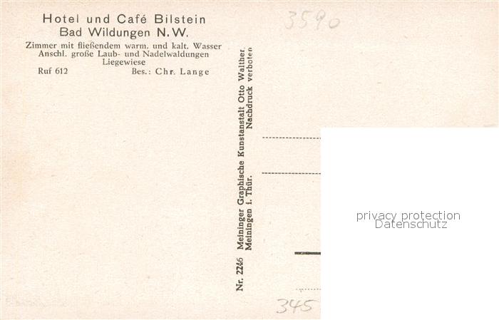 73749429 Bad Wildungen Hotel Cafe Bilstein postalisch nicht gelaufen Erhaltung siehe scans [WerneD78] KatCode: 11110006635003