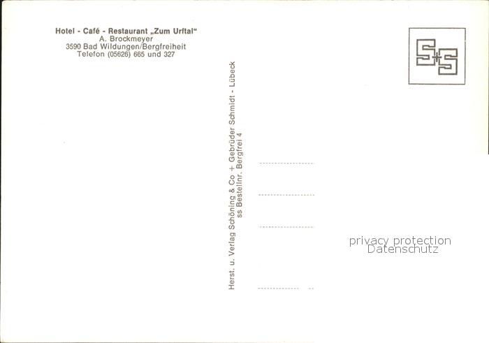 72608382 Bad Wildungen Hotel Cafe Restaurant Zum Urftal postalisch nicht gelaufen Erhaltung siehe scans [AndreD76] KatCode: 11110006635003