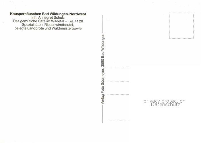 72713444 Bad Wildungen Knusperhaeuschen Cafe im Wildetal postalisch nicht gelaufen Erhaltung siehe scans [FriedD77] KatCode: 11110006635003