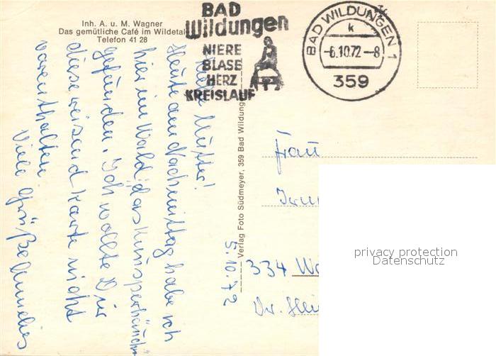 73072238 alte Postkarte Bad Wildungen Knusperhaeuschen Cafe im Wildetal Baumbluete postalisch gelaufen Erhaltung siehe scans [FriedD77] KatCode: 11110006635003