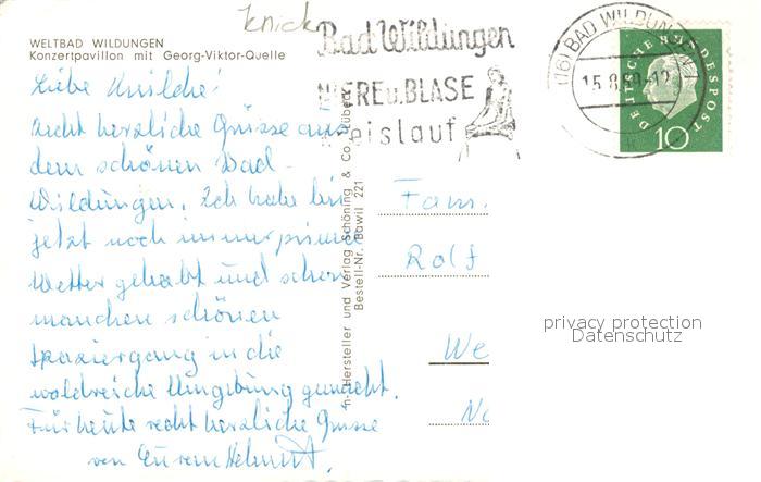 73021504 alte Postkarte Bad Wildungen Konzertpavillon mit Georg Viktor Quelle postalisch gelaufen Erhaltung siehe scans [WerneD78] KatCode: 11110006635003