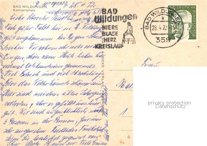 72919261 alte Postkarte Bad Wildungen Konzertplatz postalisch gelaufen Erhaltung siehe scans [NatalD47] KatCode: 11110006635003