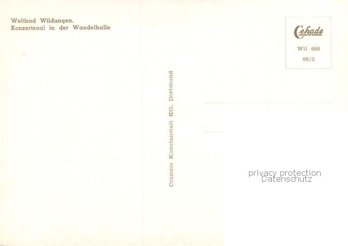 73770062 alte Postkarte Bad Wildungen Konzertsaal in der Wandelhalle postalisch gelaufen Erhaltung siehe scans [WerneD78] KatCode: 11110006635003