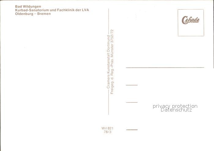 72064906 Bad Wildungen Kurbad Sanatorium Fachklinik der LVA Oldenburg Bremen postalisch nicht gelaufen Erhaltung siehe scans KatCode: 11110006635003