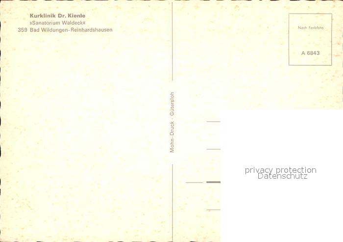 71926641 Bad Wildungen Kurklinik Dr. Kienle Sanatorium Waldeck postalisch nicht gelaufen Erhaltung siehe scans KatCode: 11110006635003