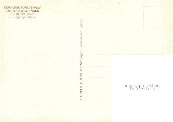 72896881 Bad Wildungen Kurklinik Fuerstenhof Eingangshalle postalisch nicht gelaufen Erhaltung siehe scans [KathaD81] KatCode: 11110006635003