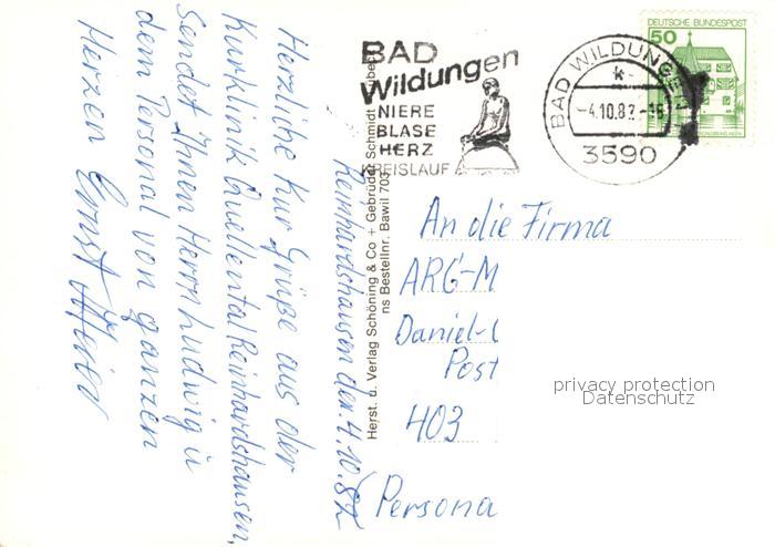 73055777 alte Postkarte Bad Wildungen Kurklinik Quellental postalisch gelaufen Erhaltung siehe scans [NatalD47] KatCode: 11110006635003