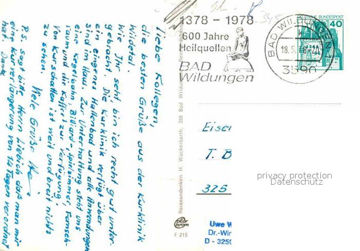 72616054 alte Postkarte Bad Wildungen Kurklinik Wildetal Teilansichten postalisch gelaufen Erhaltung siehe scans [WerneD78] KatCode: 11110006635003