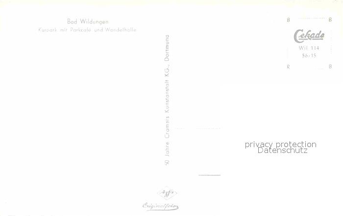 72770202 Bad Wildungen Kurpark mit Parkcafe und Wandelhalle postalisch nicht gelaufen Erhaltung siehe scans [FriedD77] KatCode: 11110006635003