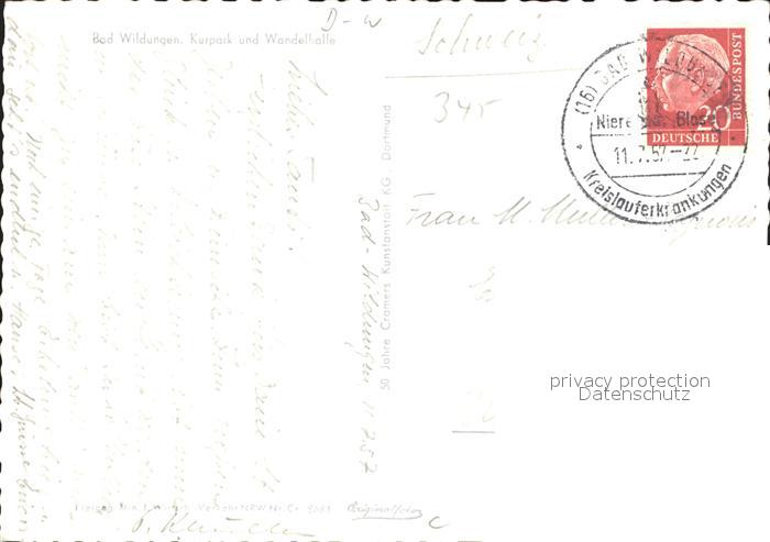 72083088 alte Postkarte Bad Wildungen Kurpark und Wandelhalle Fliegeraufnahme postalisch gelaufen Erhaltung siehe scans KatCode: 11110006635003