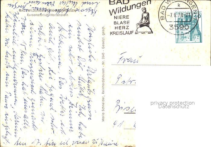 72493218 alte Postkarte Bad Wildungen Kursanatorium Hartenstein postalisch gelaufen Erhaltung siehe scans KatCode: 11110006635003