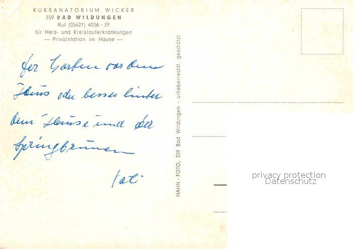 72785182 Bad Wildungen Kursanatorium Wicker postalisch nicht gelaufen Erhaltung siehe scans [FriedD77] KatCode: 11110006635003