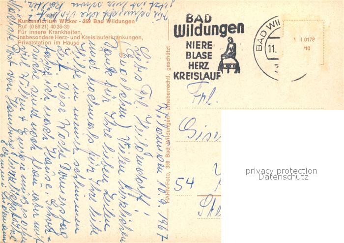 73169573 alte Postkarte Bad Wildungen Kursanatorium Wicker Wasserspiele postalisch gelaufen Erhaltung siehe scans [FriedD77] KatCode: 11110006635003