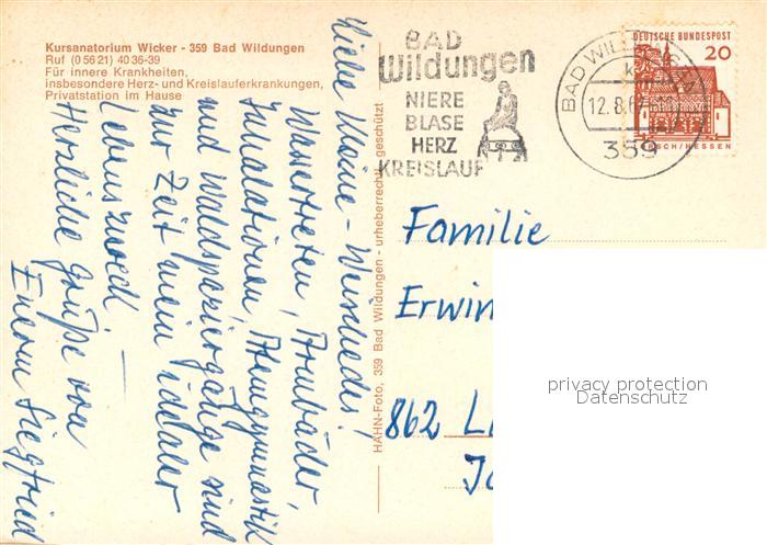 73719412 alte Postkarte Bad Wildungen Kursanatorium Wicker Wasserspiele postalisch gelaufen Erhaltung siehe scans [FriedD77] KatCode: 11110006635003