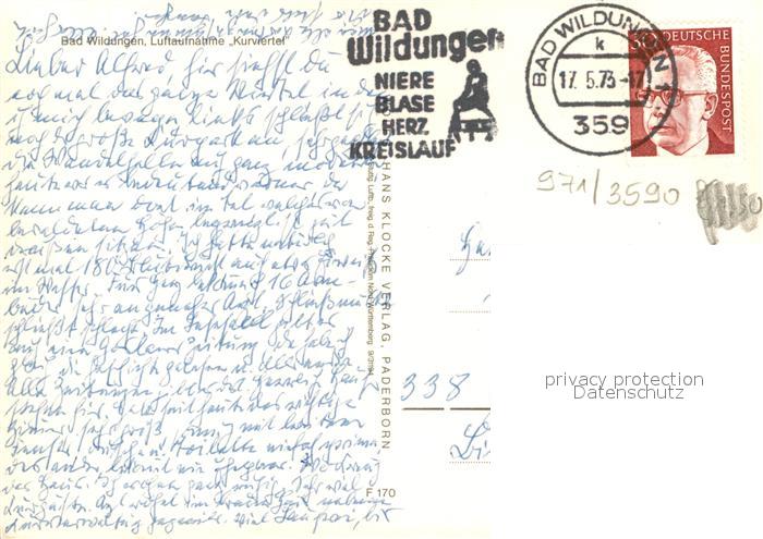 73175052 alte Postkarte Bad Wildungen Kurviertel Fliegeraufnahme postalisch gelaufen Erhaltung siehe scans [FriedD77] KatCode: 11110006635003