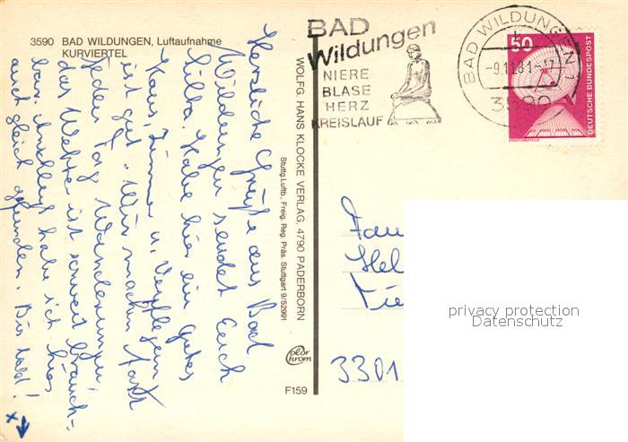 73072239 alte Postkarte Bad Wildungen Kurviertel Fliegeraufnahme postalisch gelaufen Erhaltung siehe scans [FriedD77] KatCode: 11110006635003