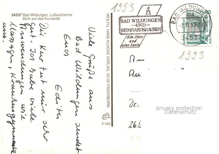 73062979 alte Postkarte Bad Wildungen Kurviertel Fliegeraufnahme postalisch gelaufen Erhaltung siehe scans [FriedD77] KatCode: 11110006635003