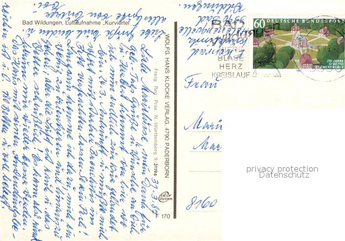 72961234 alte Postkarte Bad Wildungen Kurviertel Fliegeraufnahme postalisch gelaufen Erhaltung siehe scans [WerneD78] KatCode: 11110006635003