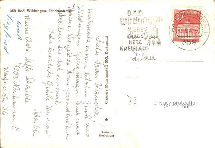 71914251 alte Postkarte Bad Wildungen Lindenstrasse postalisch gelaufen Erhaltung siehe scans KatCode: 11110006635003