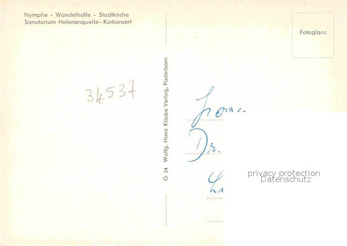 72787070 Bad Wildungen Nymphe Wandelhalle Stadtkirche Sanatorium Helenenquelle Kurkonzert postalisch nicht gelaufen Erhaltung siehe scans [FriedD77] KatCode: 11110006635003