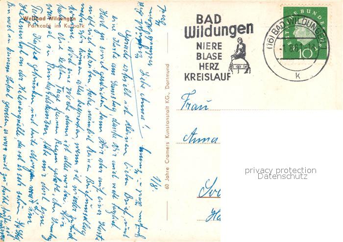 73310257 alte Postkarte Bad Wildungen Parkcafe im Kurpark postalisch gelaufen Erhaltung siehe scans [FriedD77] KatCode: 11110006635003