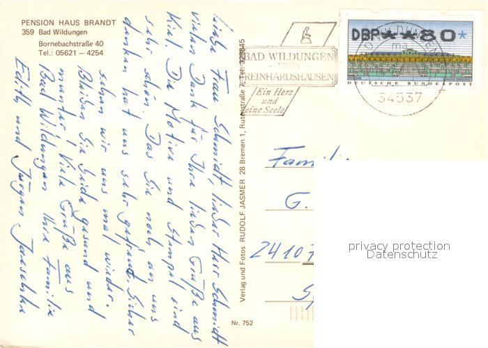 73653231 alte Postkarte Bad Wildungen Pension Haus Brandt Garten postalisch gelaufen Erhaltung siehe scans [FriedD77] KatCode: 11110006635003