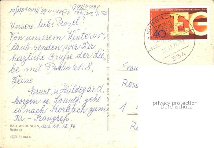 72227334 alte Postkarte Bad Wildungen Rathaus postalisch gelaufen Erhaltung siehe scans KatCode: 11110006635003