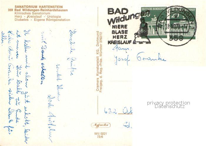 73841453 Bad Wildungen Reinhardshausen Sanatorium Hartenstein Klinisches Sanatorium Fliegeraufnahme postalisch gelaufen Erhaltung siehe scans [WerneD78] alte Postkarte Wern Katcode 11110006635003