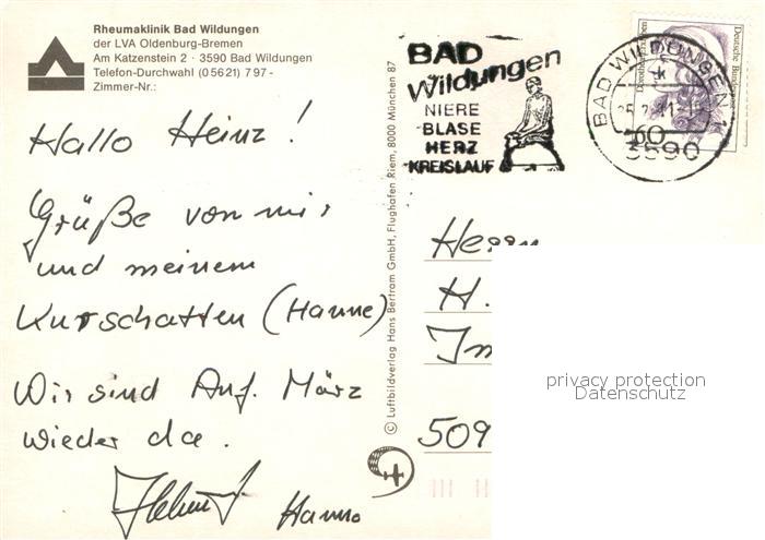 73636972 alte Postkarte Bad Wildungen Rheumaklinik der LVA Oldenburg Bremen Fliegeraufnahme postalisch gelaufen Erhaltung siehe scans [FriedD77] KatCode: 11110006635003