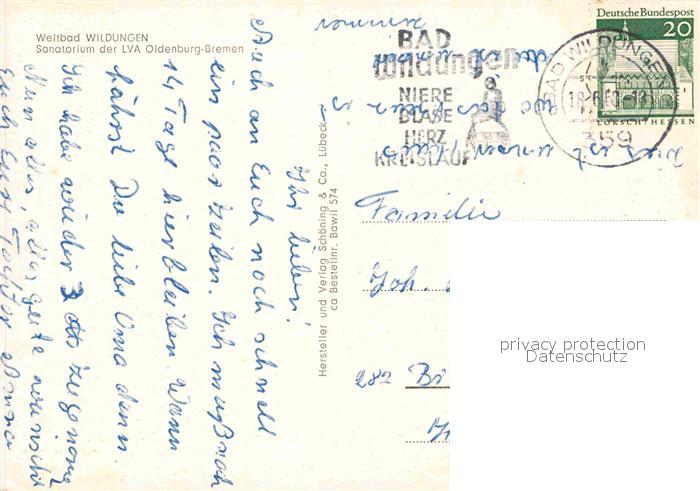 72781051 alte Postkarte Bad Wildungen Sanatorium der LVA Oldenburg Bremen postalisch gelaufen Erhaltung siehe scans [FriedD77] KatCode: 11110006635003