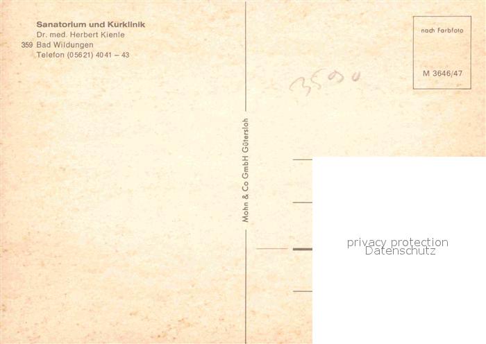 72671313 Bad Wildungen Sanatorium Dr. med Herbert Kienle postalisch nicht gelaufen Erhaltung siehe scans [NatalD47] KatCode: 11110006635003